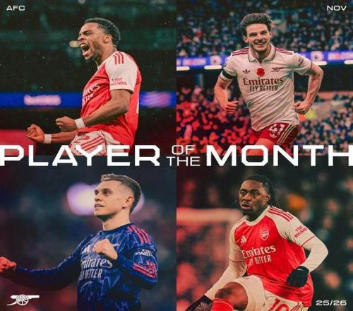 | 北京时间12月2日凌晨,阿森纳官方公布了队内11月最佳球员的候选名单,其中廷贝尔、赖斯、特罗萨德、埃泽在列。
