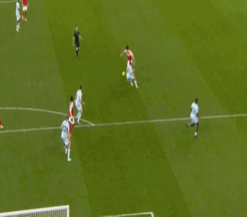 第11分钟,阿森纳踢出默契配合,马杜埃凯右路直传,本-怀特插上传中,梅里诺头槌破门,连续两轮联赛进球,1-0! 第21分钟,延森角球传中,沙德中路甩头攻门,拉亚单掌扑救,皮球击中横梁弹出,阿森纳逃过一劫。