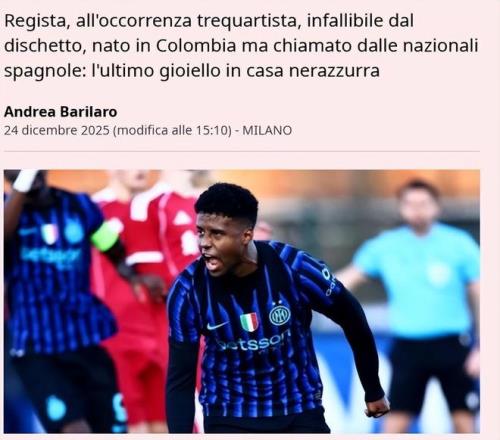 消息来源:德转 4 - 新人出现 近日,《米兰体育报》谈到了国际米兰U19小将迪兰·萨拉特,他们表示球员在加盟球队后迅速展现出全面的实力。 这位在哥伦比亚出生、西班牙成长并在意大利崭露头角的年轻天才,他不仅是一个点球高手,还是一名中场多面手,能够胜任多个位置。萨拉特在2023年夏天加盟国际米兰后迅速融入球队,尽管他的表现曾有过起伏,但他始终保持着对比赛的热情和决心。 萨拉特的技术特点与恰尔汗奥卢相似,他能组织进攻、主罚点球,并且能够在比赛中灵活变换角色。无论是作为中场核心还是边路球员,萨拉特都能展现出出色的能力。他在球场上的冷静和自信尤其令人印象深刻,尤其是在关键时刻,他总能挺身而出,承担起罚点球的责任。