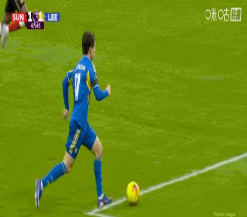 上咪咕独家看英超 第47分钟,阿伦森助攻,勒温推射破门扳平比分,利兹联1-1桑德兰