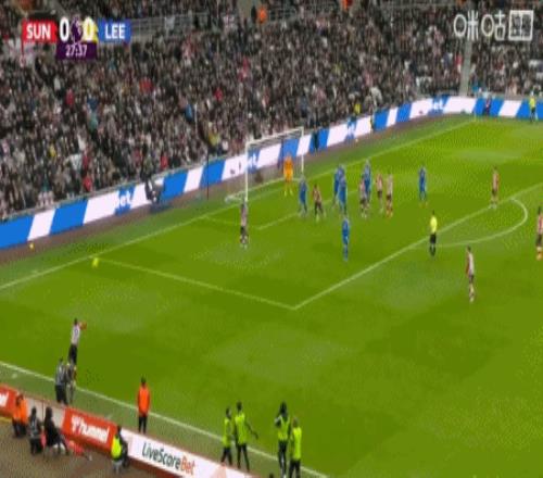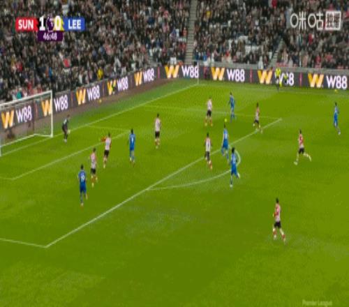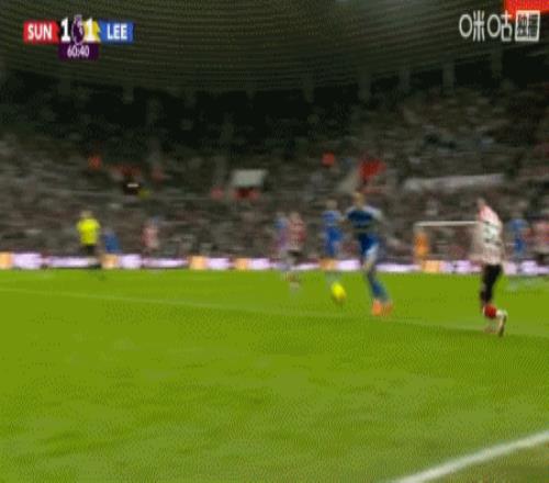 上咪咕独家看英超 第28分钟,扎卡斜塞,阿丁格拉兜射破门,桑德兰1-0利兹联