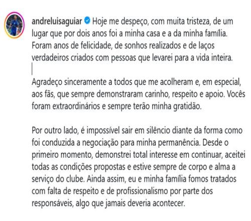 “然而,面对俱乐部管理层在续约谈判中的处理方式,我无法默然离去。从一开始,我就明确表达了强烈的留队意愿,接受了对方提出的所有条件,并始终全身心为俱乐部服务。尽管如此,我和我的家人却遭到了相关负责人的不尊重和不专业对待,这是绝不应该发生的。”路易斯表示。 尽管如此,路易斯还是对上海申花的球迷表达了祝福:“遗憾的是,足球世界往往如此运作。我带着问心无愧离开,因为我已竭尽所能。我祝愿俱乐部未来取得成功,这尤其为了那些球迷——他们是这家俱乐部真正的灵魂,理应得到更多更好的对待。”