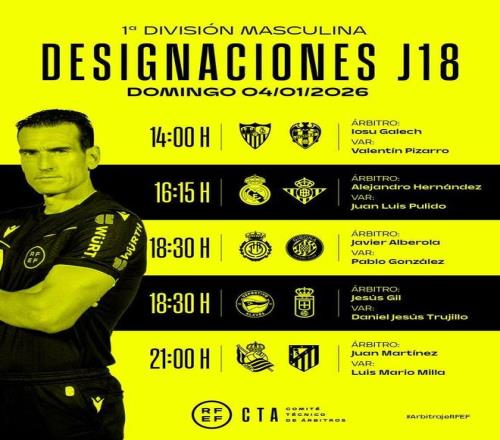 | 北京时间1月3日,西班牙足协官方公布了联赛第18轮第3比赛日的裁判名单,平方哥埃尔南德斯执法皇马vs贝蒂斯。