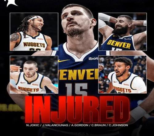 而伤病最严重的,还是当属丹佛掘金队。 距离约基奇左膝过度伸展受伤仅过去几天,掘金再次传来坏消息。瓦兰丘纳斯又惨遭右小腿拉伤,再加上此前布劳恩左脚踝扭伤六周后重新接受评估、阿隆-戈登右腿筋二级拉伤至少缺席4-6周、卡梅隆·约翰逊右膝骨挫伤至少缺席4-6周,这支西部争冠大热门强队的核心阵容几乎全部沦陷。 掘金五大主力的伤病情况: