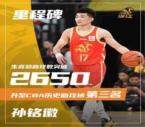常规赛第10轮浙江方兴渡再胜北京豪取8连胜,孙铭徽CBA生涯总助攻数跻身历史前3!