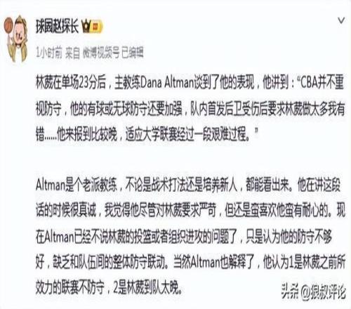 | 北京时间1月8日,俄勒冈大学主教练阿尔特曼接受采访,谈到林葳上一场砍下23分,决战时刻连中关键球的话题。 俄勒冈大学主教练阿尔特曼:林葳的火力会给我们带来帮助,但他和我们配合还不默契,而且不习惯我们的防守。他之前所在的CBA并不重视防守,他的有球或无球防守还要加强。林葳是个出色的年轻人,我很喜欢他。 他来报到比较晚,适应大学联赛要经过一段艰难过程,要求林葳做太多,我也有错,他应付不来,但是他已经越来越适应了。 上一场,俄勒冈大学以85-88不敌罗格斯大学。林葳出战33分钟,14投8中,其中三分12投6中,获得23分1篮板5助攻2抢断。 常规时间最后时刻,林葳出手命中准绝平三分,帮助俄勒冈大学将比赛拖入加时,但在加时赛中憾负罗格斯大学。 媒体人赵探长发文点评:Altman是个老派教练,不论是战术打法还是培养新人,都能看出来。他在讲这段话的时候很真诚,我觉得他尽管对林葳要求严苛,但还是蛮喜欢他蛮有耐心的。现在Altman已经不说林葳的投篮或者组织进攻的问题了,只是认为他的防守不够好,缺乏和队伍间的整体防守联动。当然Altman也解释了,他认为1是林葳之前所效力的联赛不防守,2是林葳到队太晚。 其实CBA并不是不防守,我们有不错的防守球员和以防守著称的球队,只是联赛级别不够高,大多数球员防守习惯不够好,另外就是林葳之前所在的同曦队确实防守糟糕,林葳也不是合格的防守球员,这是因为他们当时的风格就是崇尚进攻,几乎不防守,这对林葳的成长肯定是有影响的。不过经过这段时间的改造,林葳已经有了很明显的进步,尤其在NCAA单场“20+5”很有含金量。 另外,俄勒冈男篮的后场核心Jackson Shelstad接近复出,林葳或许会重回替补,但相信上一场林葳生涯之夜之后,他的信心已经回来了。 |