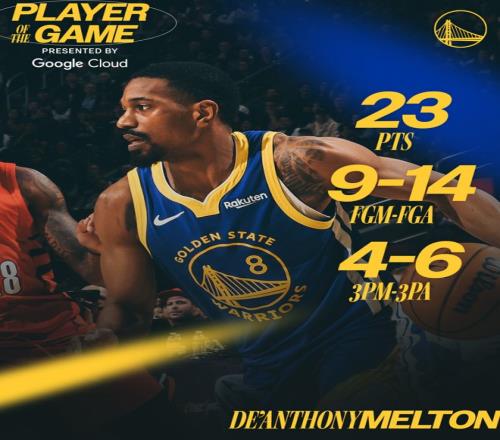 末节,科尔直接用波杰姆斯基、梅尔顿、理查德、桑托斯、霍福德的第三阵容了,开拓者是一个正常的轮换可他们这套正常轮换硬实力也非常孱弱,随后梅尔顿连拿11分接管比赛,他打成库里,比赛走向完结。