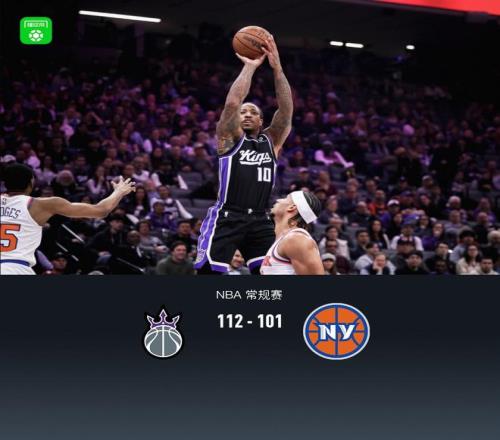 北京时间1月15日NBA 常规赛,萨克拉门托国王对阵纽约尼克斯。半场国王56-42尼克斯,最终国王112-101尼克斯。 萨克拉门托国王德罗赞27分6板5助,扎克-拉文25分5板1助;纽约尼克斯米卡尔-布里奇斯19分3板1助,OG-阿奴诺比15分3板4助。
