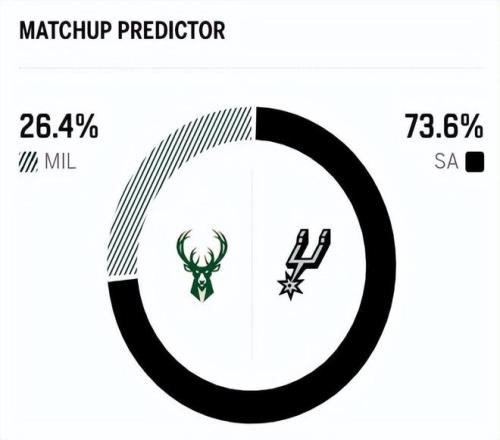 赛前,美媒ESPN对本场比赛进行了胜率预测,雄鹿队胜率仅有26.4%,依旧不被看好,马刺队胜率则高达73.6% ,显然美媒都看好马刺本场能够打破“低迷魔咒” 。 首发阵容方面,马刺队这边,瓦塞尔因伤确定缺阵,文班亚马因左小腿伤病管理可能会有出场时间限制,教练排出的最新首发五人组为:哈里森-巴恩斯、斯蒂芬-卡斯尔、达龙-福克斯、尚帕尼、文班亚马;雄鹿队这边,首发阵容则为:小波特、罗林斯、AJ-格林、字母哥、特纳。