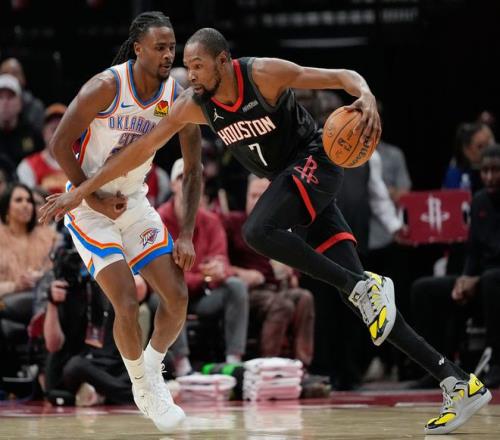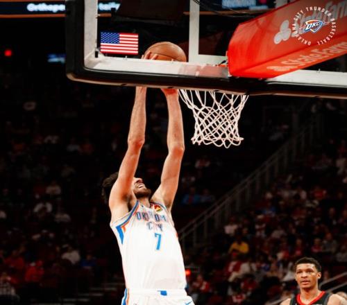 次节霍姆格伦的运动能力体现出来连续的跟进暴扣,雷霆将分差领先到8分,火箭多个前场篮板只可惜就是打不进,亚当斯各种点前场篮板太强势,凭借海王的前场篮板火箭紧咬比分。亚当斯下了两分钟雷霆又拉开9分,火箭再度缩小到4分后SGA命中了压哨三分,亚历山大10分,霍姆格伦16分,杜兰特13中3,申京9中3。
