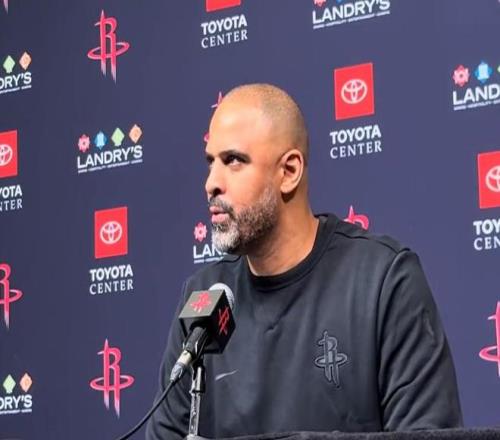 记者:“针对雷霆对于杜兰特的防守,您认为有什么办法能为他创造出更好的出手机会吗?” 乌度卡:“我觉得我们有太多进攻回合停滞了,总是在他们重兵布阵的情况下强打低位。面对他们,你必须让球和人动起来。他们是一支会收缩禁区、进行协防和阻拦的球队,所以我们需要更多的移动。这支球队非常依赖他们的轮转和协防,无论是对杜兰特还是申京,他们都进行了重点布防,导致我们今天从低位单打或者一对一单打中收获甚少。” 记者:“对于这样一场比赛,您是否认为这是衡量球队目前水平的一个标尺?还是说您不会太过看重?” 乌度卡:“这只是对我们的一次很好的考验,考验我们应对他们独特打法的能力,我认为每一场比赛对我们都很重要,我们最近并没有打出最佳状态。所以无论对手战绩如何,我们都需要继续专注于我们自己的事情,我们整场在进攻端都没有处理好他们的身体对抗强度,更不用说第四节了。有太多时候,我们就是在人堆里勉强出手,没有能够应对这种身体对抗,或者在他们收缩禁区时没有找到外线的接应点,这导致了你们看到的那些糟糕命中率——全队只有33%。” 记者:“当申京在低位拿球时,你是要求他尝试持球观察吸引包夹为其他队友创造机会?还是希望他也许可以更快地做出动作,直接攻击篮筐?” 乌度卡:“他需要更具侵略性,不要等着防守过来,有时候防守者就是守在那里,我们试图让球员们进行轮转和切入来调动防守,但他们基本上就是固守在那里。所以他应该继续进攻,直到对手的协防或包夹来,当包夹真的来了时要果断决策并出球。我认为他大部分的失误都是在低位持球时间有点太长了。” |