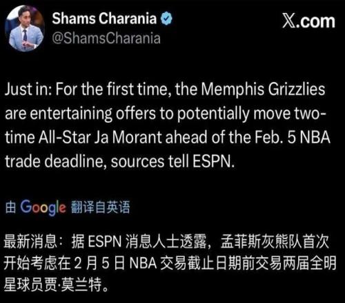 面对这一连串的风波,灰熊也终于不忍了。近期报道,莫兰特已经正式被灰熊放入交易讨论之中。而相比于此前的流言消息,业内人士爆料,莫兰特在今年交易截止日(2月6日)之前,基本已经大概率离队了。 这个时间点就很关键了。 灰熊这队一向谨慎,也不轻易拆核心组合。而一旦他们决定在截止日前动刀,那就说明球队内部已经评估清楚了,后续继续赌莫兰特,风险已经远大于收益了。