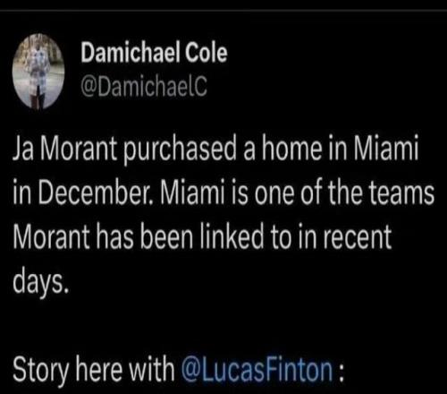 而从另外的细节内容来看,这则流言可能更耐人寻味的是: 根据《孟菲斯商业呼声报》披露,在灰熊考虑交易莫兰特的消息被确认前两个多星期,莫兰特已经在迈阿密戴德县购置了一套房产,价值320万美元。 如果说这不是巧合,那么完全就是提前预告市场风向了。特别是放在如今的时间线上,难免让人浮想联翩。