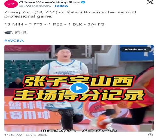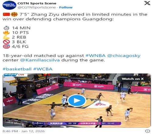 | 年仅18岁、身高达到7英尺3英寸(约2米21)的中国女篮新星张子宇,近日在职业赛场上的表现引爆社交媒体——因为她在WCBA赛场上,正面“碾压”多位WNBA成名球员。