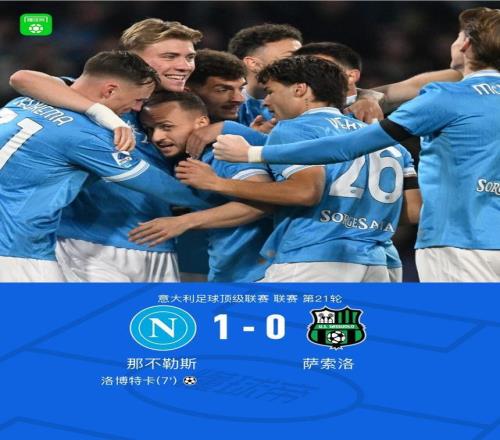 北京时间1月18日,意大利足球顶级联赛第21轮,那不勒斯坐镇主场迎战萨索洛。比赛中,洛博特卡为那不勒斯攻入制胜进球。最终,那不勒斯以1-0战胜萨索洛,全取三分。