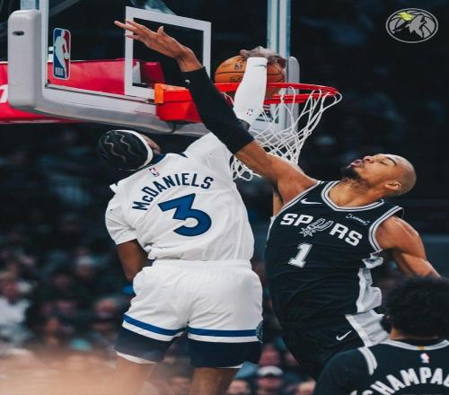 北京时间1月18日,NBA常规赛继续火热进行。马刺坐镇主场与森林狼展开对决,该场比赛是双方本赛季的第三次交手。前两战都失利的圣安东尼奥,渴望在此役完成复仇。同时,马刺还期待巩固西部第2的排位。 跃居西部第4展现了明尼苏达的强大实力,连续2个赛季打入西部决赛的森林狼,堪称是联盟最强劲旅之一。此役,鲁迪戈贝尔、香农伤停,背靠背作战的森林狼面临着严峻的体能考验。芬奇的首发五虎是爱德华兹、麦克丹尼尔斯、里德、兰德尔与迪文琴佐。瓦塞尔继续缺战,米奇约翰逊的首发五人是文班亚马、福克斯、卡斯尔、巴恩斯与尚帕尼。里德、兰德尔与文班亚马的内线对决,爱德华兹与马刺后卫群的交锋,都让本场比赛充满看点。 拒绝25分逆转!文班亚马39+9末节暴走,马刺险胜森林狼!爱德华兹55+4+9记3分创纪录! 全场比赛回顾 首节开打,福克斯上篮打进2球,随后完成抢断,文班亚马助攻卡斯尔暴扣。爱德华兹中投得分,迪文琴佐抢断,爱德华兹暴扣,麦克丹尼尔斯抢断后2罚1中,文班亚马补篮还以颜色。爱德华兹高难度单打命中,随后吃到技术犯规,文班亚马罚球命中。麦克丹尼尔上篮得分,卡斯尔2罚1中,麦克丹尼尔斯、贝兰热携手冲击篮下取分,尚帕尼、爱德华兹各有跳投取分,贝兰热暴扣,卡斯尔2罚不中。 麦克丹尼尔斯暴扣