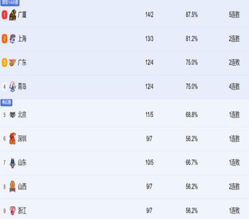 CBA最新排名!广厦占榜首,山西崛起,京辽情况糟糕,新疆难复苏