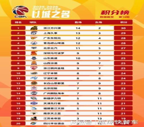 | CBA常规赛第16轮展开全面角逐,辽宁、北京以及上海等队悉数出战。目前,积分榜上,卫冕冠军广厦依旧稳居第一名。上海队这一轮比赛掀翻新疆队以后,他们又一次杀回积分榜第2名。而11冠王广东队则下滑到积分榜第3名。深圳队这一战双杀辽宁队以后,他们的排名也上升到积分榜第6名。而作为上赛季的超级黑马,山西队也止住颓势,重返积分榜前八。四冠王辽宁队则排在积分榜第10名。