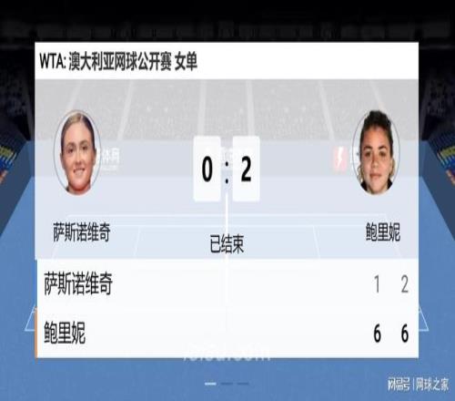 在资格赛迎战各路好手打得风生水起,结果到了正赛却被人按在地上反复摩擦,这突发的一幕,显然让萨斯诺维奇始料未及,芳心大乱。鲍里妮也没有错过白俄罗斯姑娘给的这个机会,以摧枯拉朽之势迅速在第二盘以5比1来到了整场比赛的制高点,彻底将山一般的压力全部推向了萨斯诺维奇。 就在所有人都认为白俄罗斯姑娘大概率会崩盘,最后以吞双油条的方式遭遇一轮游时,没想到眼前的这个巨大危机,却在瞬间将萨斯诺维奇整清醒了。 看到她从第七局状态似有较明显的提升,奋起反击将比分追至2比5后,直播间的球迷和网友还预测,估计鲍里妮想结束战斗真要费一番功夫了。无奈白俄罗斯姑娘的状态起势太晚了,最终还是让鲍里妮以6比2结束战斗,遭到了无情血洗,成为了鲍里妮澳网首秀就炮制惨案下的女主,单打之旅像烟花般一闪就结束了。