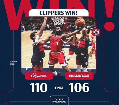 | 北京时间今日,在NBA常规赛中,洛杉矶快船队在客场以110-106击败了华盛顿奇才队,豪取六连胜。