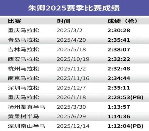 朱卿在南山半马PB 兴奋地挥起了拳头 因为最后一个南半绝望坡,我一步都没想收,我说先干上去再说,然后干上去之后,下坡也没缓着下,直接一个劲儿往前冲,最后一公里了,再冲一下,到终点72分04 。但凡我当时眼睛没糊,我可能还会再往前冲一下,眼睛被汗水遮住了,朦朦胧胧,有点近视的感觉,看不清那个数字了。 Q南山半马的PB带给你什么? A那次PB是我去年下半年跑的最痛快的一次。它的意义在于,夏天跑了那么多间歇,速度终于此刻展示了,哪怕上周跑了个全马,也不影响我半马PB。这个给了我敢往前冲加速的底气,半马成绩跟全马成绩都是匹配的,你半马提了之后,其实全马更好提一点,也更好预测一点。 Q今天跑进228 ,给了你什么样的一个眼界或者是新的认知? A第一反应——以后比赛策略还是得稳住,不能加太急,以后比赛慢慢攒经验,不要着急中间突然加速。我们也可能调整一下策略,或下次比赛尝试一下,努力到36或37公里后再加速更保险一点。我希望一场比赛能以比较好体感跑下来,不是到后半程要顶一公里。 Q明天(1月19日)是你的生日,收到这个PB生日礼物很惊喜吧? A太突然太惊喜了,算是最好的生日礼物吧。 Q迈入228门槛后,有没有特别想要的东西? A机会合适的话,想去国外看一看。名次冠军年年换,大家的出发点不一样,我想去看看外面的比赛。另外还是那句话,无伤PB,就这样练着,进步慢一点没关系。跑到哪是哪,不强求。我跟罗源一直说一句话,从南半PB的那一刻就证明一个问题——广东也能练,不存在哪里练不了的问题,只要想跑,只要你想奔跑,一双鞋就够了,哪里都可以跑。 Q你们提到过今年冬训目标是朝着226? A朝着227-226两个数值中间努力,跑重庆之前,我们规划好了这么练,因为水平去年练得七七八八了,没必要再去纠结跑229来证明这个能力了,我说还要接着往前走,基于自己的状况,而不是基于外界对你——一定要破230证明给他们看。 Q接下来注定要比自己打开230更难,自己心态上至少已经准备好了么? A我的心态早就准备好了。广东是最舒服的冬天,我想把握好眼下这段时间。因为有过夏训的体验,我很珍惜冬天的这段时间。这也是之前我跟罗源为什么一直纠结,要不要跑重庆的原因。因为跑重庆意味着冬训又少了两周,跑完比赛最少调整两周,如果不出来比赛,那这一个月都在训练,相当于冬训了。