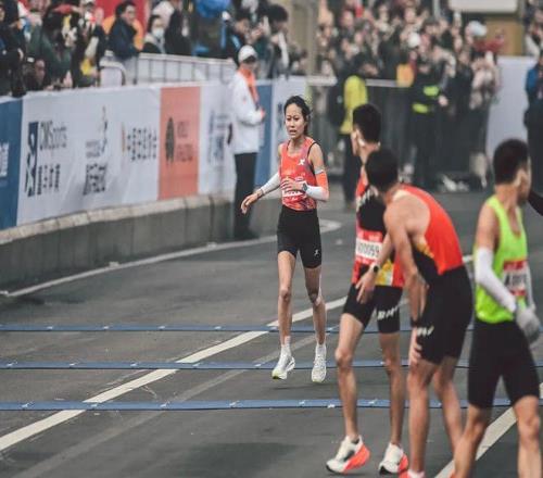 我想说的是,今天跑起来整体感感觉其实很复杂。我从来没有尝试过在30公里就提速,因为去年重马我是整个稳下来的,就是因为那会我想法很简单,我就跑233,想法没那么复杂。 我今天的想法就要复杂一点。超过刘敏的时候,我觉得我能把刘敏追上,那丁姐可能也会追上我,我想我不能掉,都第一了我一定要稳住。如果丁姐最后追上来,我也要看能不能跟一下,如果真的跟不了了,那我就尽量保住第二这个位置。已经就最后几公里了,我不能跑完之后再去想当时为什么不顶一顶?我不想留这种遗憾,我想大胆去跑一下。尝试一下途中不同的策略,你才知道你以后遇到这种情况该怎么去处理,因为不可能每场比赛都会以一个很轻松很稳的体感跑下来。 Q说说你和丁常琴的那一段? A20公里左右丁姐从后面追上来。她是跑加速慢慢加上来,然后我就跟着她跑,因为大家跑的节奏一下子拉到相同了,我就跟在她后面,保持一个安全距离,我也不希望我跟着她跑,干扰到她,然后基本上进水站都会缓一下这样子。跟她跑了一段之后,感觉按照这种速度我担心会慢,正好又是个下坡,我顺带把速度提一提。我加了一段速,还一直以为丁姐在我后面,因为她跑起来很轻,体能分配的经济性也很好。