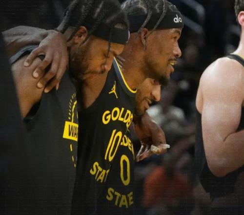 而就在今天,勇士队在对阵热火的比赛中,突发遭遇毁灭性打击,球队大核心吉米·巴特勒在第三节一次平常的接球后,膝盖突然向内扭曲,他痛苦地捂住右膝倒在地上。勇士队马上喊出暂停,队友们迅速围上前查看巴特勒的情况。随后,巴特勒在希尔德和库明加的搀扶下缓缓离场,整个过程中,他的右脚几乎不能受力。 尽管如此,离场时他还试图保持着镇定,甚至露出了一丝勉强的笑容,如今来看,这个笑容更像是预知结果后的坦然。