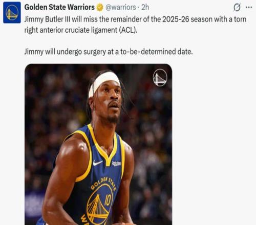 等队友把他拉起来后,巴特勒甚至还笑了一下,似乎和往常一样。 但赛后没多久,消息就砸下来了: 右膝前十字韧带撕裂,赛季报销。 一句话就直接判了巴特勒死刑,而在这之外,输掉的可能还有勇士本就不牢固的未来计划。