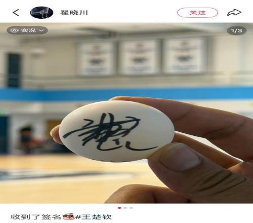 近日,赵睿、翟晓川现场观战WTT中国大满贯的比赛,赛后,两位球员都在社媒晒出了王楚钦的签名。