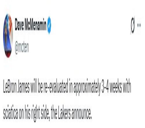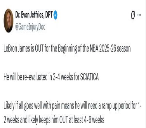 詹姆斯遭遇坐骨神经痛!生涯首次缺席揭幕战专家称可能休战46周