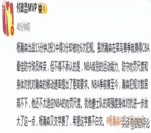 杨瀚森3分6犯泪洒现场引热议!前山东外援安慰选秀前力推开拓者