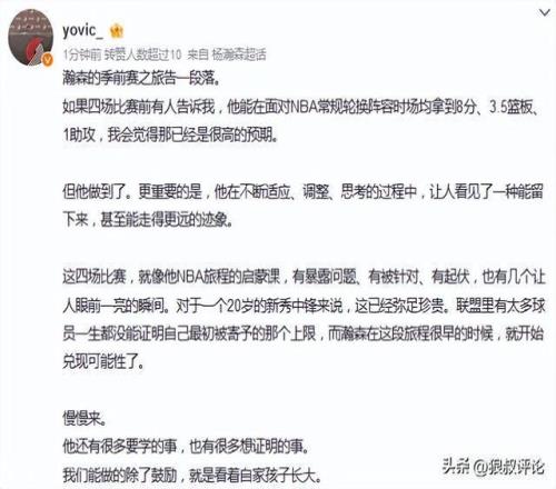 北京时间10月17日,NBA季前赛,开拓者季前赛收官战129-132不敌爵士,杨瀚森本场比赛相对比较低迷,特别是控制犯规方面未能达到预期,最后时刻被罚离场。 有镜头看到杨瀚森一度泪洒现场。安慰他的是前山东外援杰特,目前开拓者球员发展教练引发外界的热议。 杰特曾公开表示:杨瀚森是一个很好的球员,他有着很高的篮球智商,我对他印象深刻。我期待着他能在NBA打出属于自己的一片天空,他会在这里每天都变得更好,他是一个很努力,上进的球员,他会学习到很多东西。 全场比赛,杨瀚森登场15分钟,得到3分1助攻,6次犯满下场。 在四场季前赛中,杨瀚森场均出战18.3分钟,砍下8分3.5篮板1.3盖帽,出现5.3次犯规。 媒体人赵探长发文点评:今天是比较糟心的一场,对位的内线都是比自己速度更快、对抗更好、NBA经验更成熟的中锋,队友也不爱分享球,基本只能折返跑,导致杨瀚森场上观感不好。还好只是季前赛,这场的录像小杨可以多看多总结了。 媒体人付政浩发文点评:虽然瀚森在菜鸟赛季就摘得CBA最佳防守球员殊荣,但不得不承认的是,NBA级别的运动能力、防守吹罚尺度和身体对抗对瀚森的移动速率提出了更高要求。 NBA季前赛至今,瀚森犯规次数居高不下,他还不太适应NBA的吹罚尺度。犹他爵士队的高强度身体对抗进一步放大了这一点,杨瀚森又交学费了,希望这学费不白交。 开拓者中文记者发文点评:瀚森的季前赛之旅告一段落。 如果四场比赛前有人告诉我,他能在面对NBA常规轮换阵容时场均拿到8分、3.5篮板、1助攻,我会觉得那已经是很高的预期。 但他做到了。更重要的是,他在不断适应、调整、思考的过程中,让人看见了一种能留下来,甚至能走得更远的迹象。 这四场比赛,就像他NBA旅程的启蒙课,有暴露问题、有被针对、有起伏,也有几个让人眼前一亮的瞬间。对于一个20岁的新秀中锋来说,这已经弥足珍贵。联盟里有太多球员一生都没能证明自己最初被寄予的那个上限,而瀚森在这段旅程很早的时候,就开始兑现可能性了。 慢慢来。 他还有很多要学的事,也有很多想证明的事。 我们能做的除了鼓励,就是看着自家孩子长大。 |
