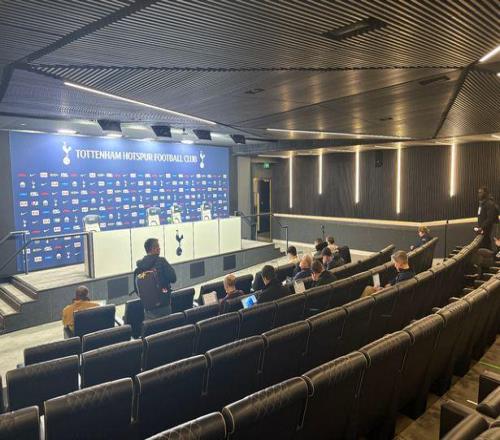 媒体室本身宛如豪华酒店的大堂。这里有充足的工作空间、舒适的皮垫座椅,托特纳姆热刺还为记者提供了储物柜来存放包袋。 从媒体中心到媒体席的路线有明确标识——否则很容易迷路——而且球场内部比外部更加震撼人心。 拉特克利夫希望在2030年前建造一座能容纳10万人的新老特拉福德,而热刺的经验无疑值得借鉴。 球场的设计堪称卓越。整个参观过程中,你会感到自己置身于一个特殊的竞技场,建筑设计公司Populous确实值得所有赞誉。 从记者的角度来看,媒体席宽敞且位置极佳,视野开阔,而媒体大厅则为教练进行赛后采访提供了绝佳的空间。