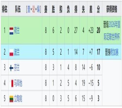 | 体坛周报全媒体原创 今晨世预赛欧洲区G组末轮,荷兰主场4比0击败立陶宛,顺利拿到直接出线的资格。本组波兰队进入附加赛。