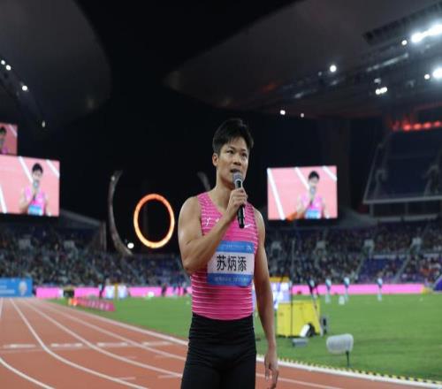 苏炳添向全场观众鞠躬。 创造9秒83这一亚洲纪录、闯入世锦赛和奥运会男子百米决赛、为中国队拿下世锦赛4x100米接力银牌……这些成就,已是苏炳添短跑生涯中耀眼的荣誉勋章,也激励着更多的后辈,在跑道上去不断突破极限。 “10秒的壁垒,一直以来被认为是我们亚洲人不能突破的,但是我们做到了,我们可以突破10秒,我们可以站到奥运决赛的赛场上,只有坚强不息的人,才能够梦想成真。” “所以我想告诉未来的运动员,只要你还站在自己的赛道上,我希望你能坚持自己的梦想,珍惜自己的青春年华,每个人的青春真的很短,曾经我也觉得自己不会老。能够在自己的青春中留下很多章节的故事,我非常开心。”